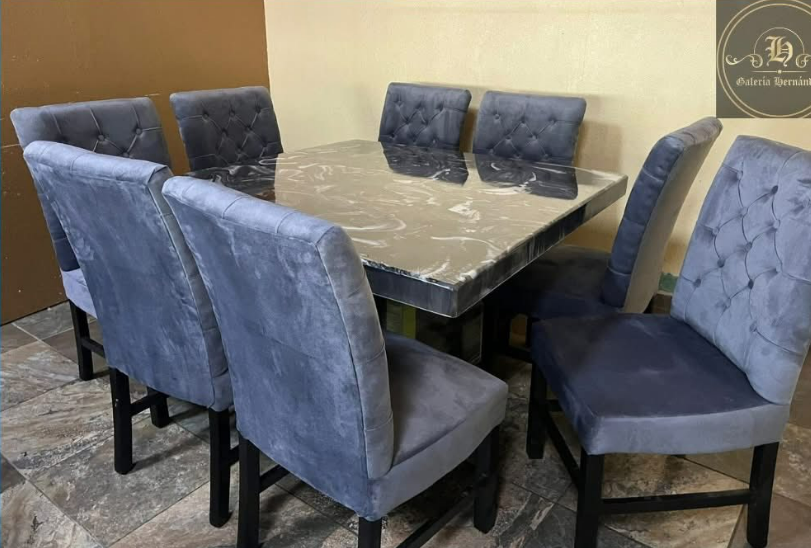 COMEDOR ADES TERCIOPELO GRIS 8 SILLAS