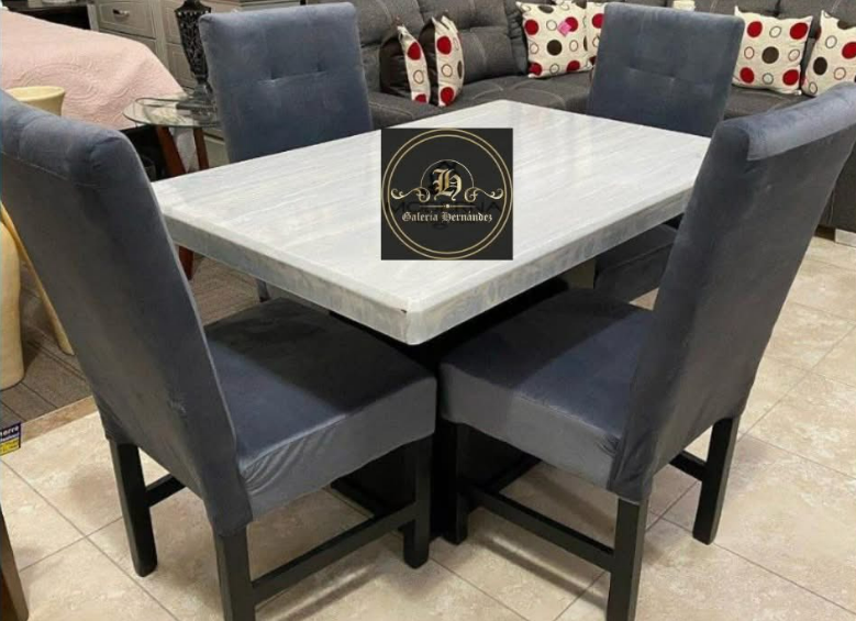 COMEDOR CON 6 SILLAS SOFI TERCIOPELO AZUL
